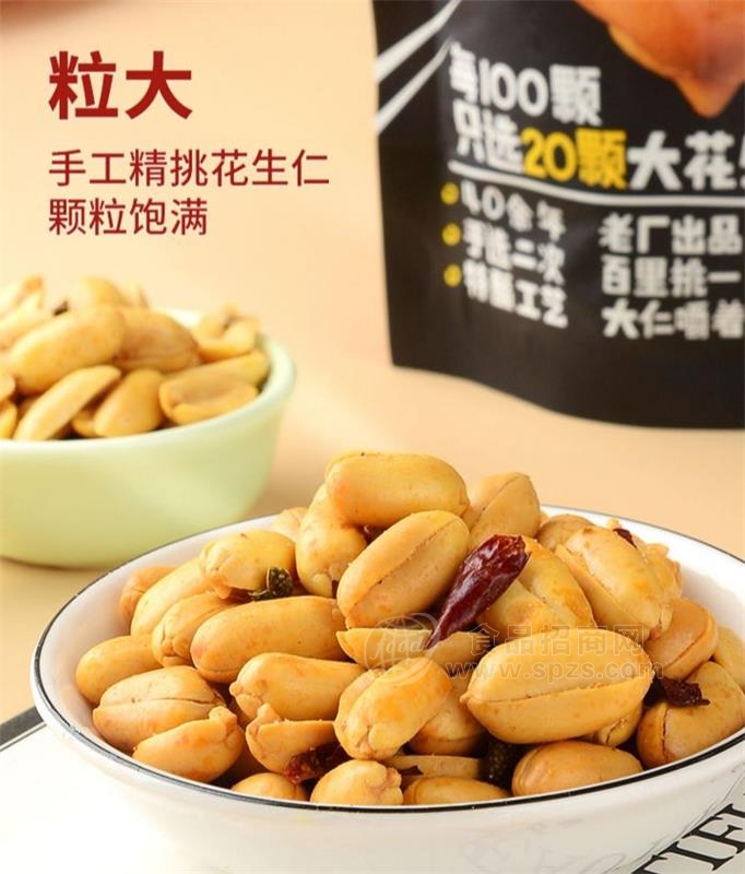 乳山麻辣花生精挑胶东传统大花生,品种优良果型大,籽粒饱满,皮果清白,果仁色泽鲜艳