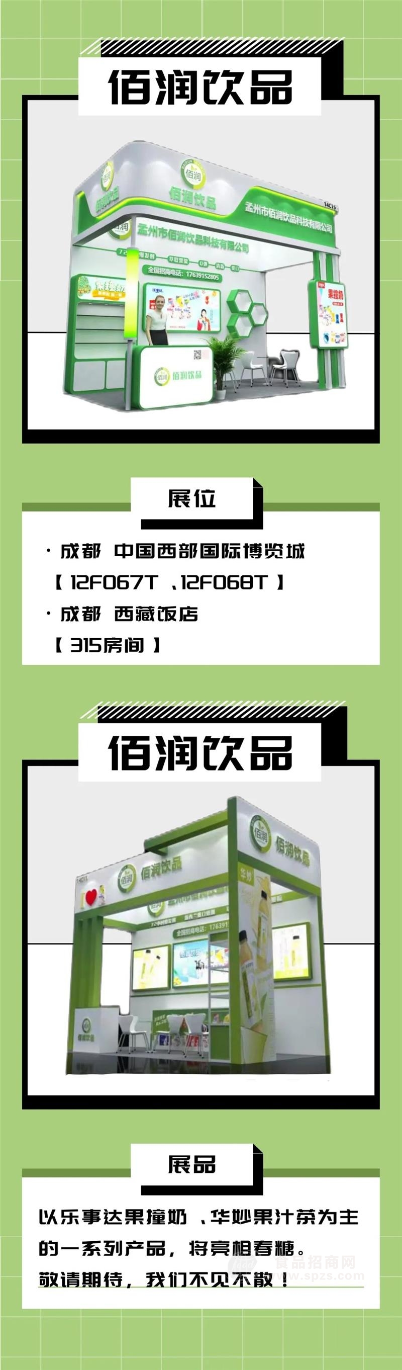抢位春糖2023年第108届全国糖酒会,将于4月12号-14日在成都召开,一城双馆,10大展区,千商万品,精彩不断。佰润饮品也将携“华妙果汁茶”“乐事达果撞奶”等一系列主打产品,亮相糖酒盛会!展位号:西藏饭店315房间 / 成都·中国西部国际博览城12F067T、12F068T,与您不见不散!