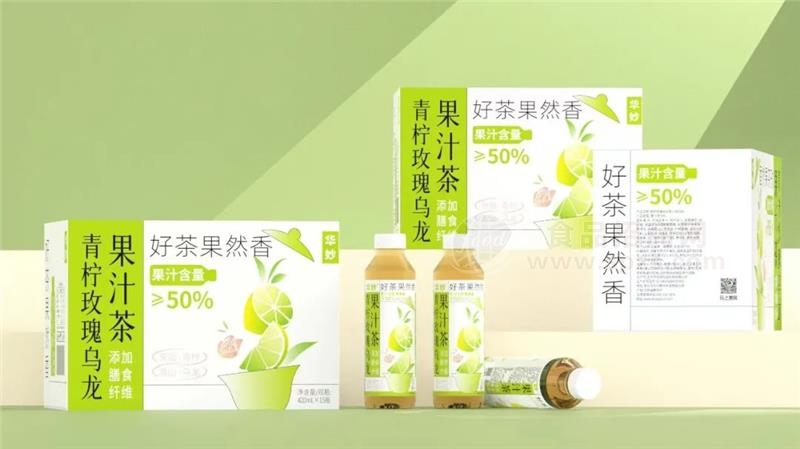 口感升级!华妙果汁茶拥有青柠玫瑰乌龙、雪梨菊花茉莉两种口味,产品精选“赵州雪梨”“福州茉莉”“安岳青柠”“高山乌龙”等地方特产,果汁含量≥50%,实现一半果汁一半茶的同时,还可以闻到淡淡的花香,从原料品种及搭配上,对其他产品形成口感碾压!