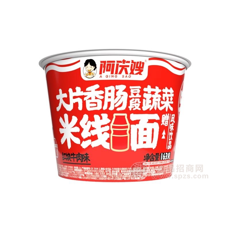 阿庆嫂兼顾消费者关注的健康、营养、性价比,面条采用非油炸技术,搭配优质米线,保证产品的品质与口感;红烧牛肉味、金汤肥牛味、藤椒酸菜鱼味三种热门口味更吸睛;净含量163g的阿庆嫂米线面包含三大片香肠、豆段、蔬菜、酱料包、调料包,料多、量大,同样的价格更实惠!再赠送一瓶100ml风味饮品,有吃有喝,满满诚意!