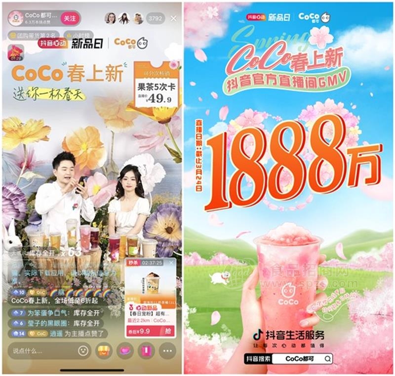 沿用场景化直播策略 打造沉浸式春日消费体验作为抖音直播的“资深玩家”,CoCo都可联动「心动上新日」在首场新品直播前就从直播形式、内容玩法、互动节奏、实物抽奖等各方面充分沟通筹备,确保直播效果。品牌自播现场继续沿用过往的场景化直播成功经验,采用实景搭建樱花主题场景直播间,花草与小动物的摆设极具童话感,打造沉浸式花园体验,为用户提供更加强烈的春日氛围,成为了吸引许多用户进入直播间的重要理由。直播间场景风格极大满足用户的少女情怀,从而也在潜移默化中加强对产品的认同感与期待值,让直播从“卖货”过渡到“卖体验”,引发更多用户的情感共鸣。官方直播在场次节奏上也颇具章法,在早场以强节奏主播冲刺GMV,晚场选用趣味性互动性强主播进行新客拉新,期间采用憋单配合拉高晚场下滑阶段人流量数据,有效提升直播间整体权重,保持账号呈平稳发展。*终CoCo都可抖音官方直播间GMV突破1888万。而在达人直播方面,CoCo都可逐步迭代直播人、货、场的各链路模块,跑出适合品牌需求的达人直播经营模型,此次活动沿用有成功合作经验的达人矩阵。直播数量累计9场,GMV突破900万。值得一提的是,次卡购买的表现尤为亮眼,次卡首次上线售卖订单量超30万,清爽果茶5次卡成为CoCo都可3月达播矩阵团品销售TOP1,背后体现好产品+好营销具有巨大势能,促进用户多次购买欲望。