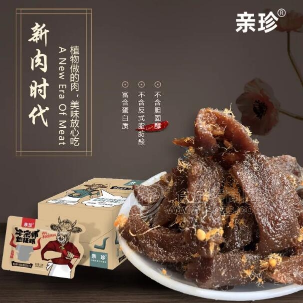 因为具备高蛋白、高纤维、低脂肪等特点,植物肉成为健康零食的新选择。亲珍植本肉干主要是以五谷蛋白精制而成,采用完全区别于传统素肉的工艺和原料,富含植物高蛋白,无胆固醇,低脂肪,充分补充人体蛋白质,符合现代人对低脂低卡健康食品的需求。不含胆固醇,不含反式脂肪酸,是目前市面上更有嚼劲,味道更鲜美的全新一代素肉类产品。