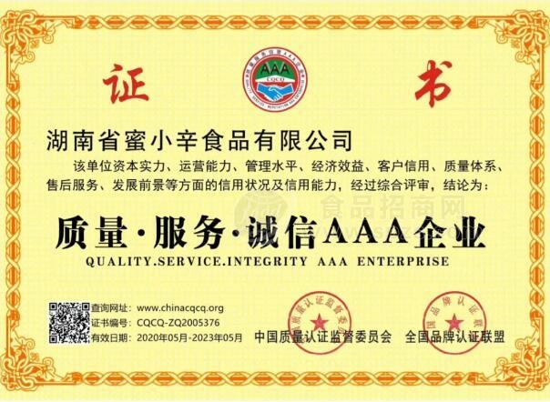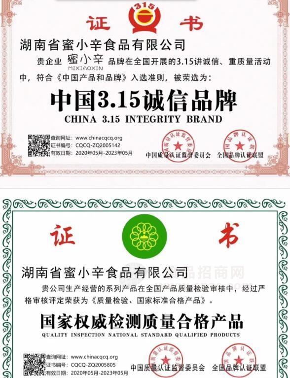 2020年,蜜小辛荣获“中国3.15诚信品牌”、“质量•服务•诚信AAA级企业”、“国家权威检测质量合格产品”等多项重量级荣誉更充分证明了蜜小辛的过硬质量和品牌实力。
