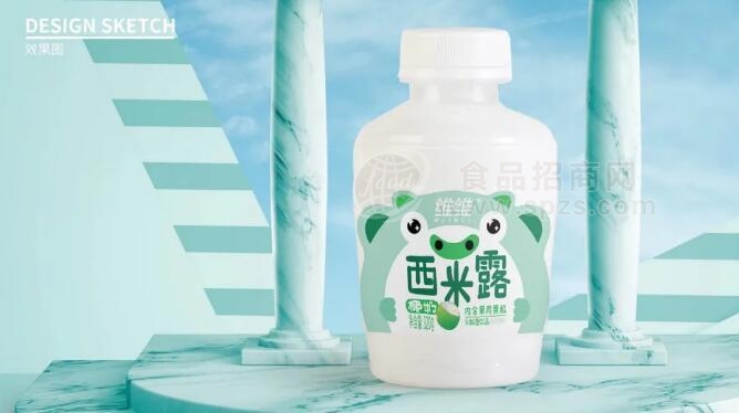 包装特色维维西米露采用“端稳礅厚”的瓶形设计,突显稳重实干的企业品质;青春清新的颜色选择,配以整体“蛙形”图案,彰显了年轻人的逗比心理。