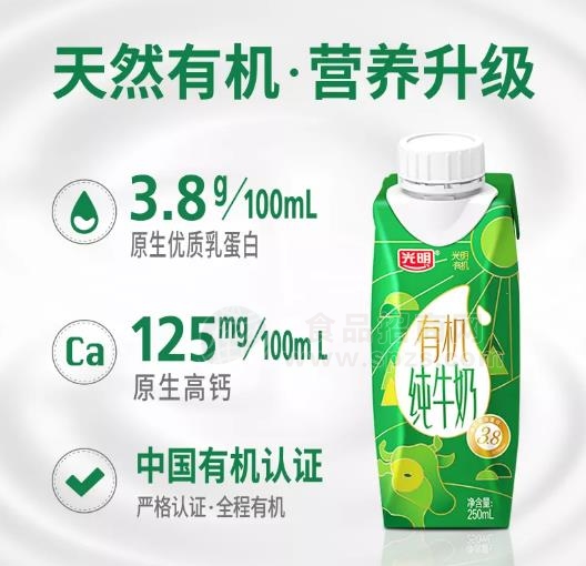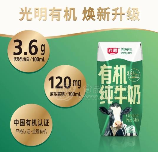 有机奶是高品质的象征,也是“完全天然”和“全程无污染”的展现,光明全新升级的有机纯牛奶,生产过程无化肥、无农药、无激素、无生长调节剂、无饲料添加剂、无防腐剂,每一杯都严格按照有机标准生产,并经国家有机认证,每一瓶都有专属有机码。