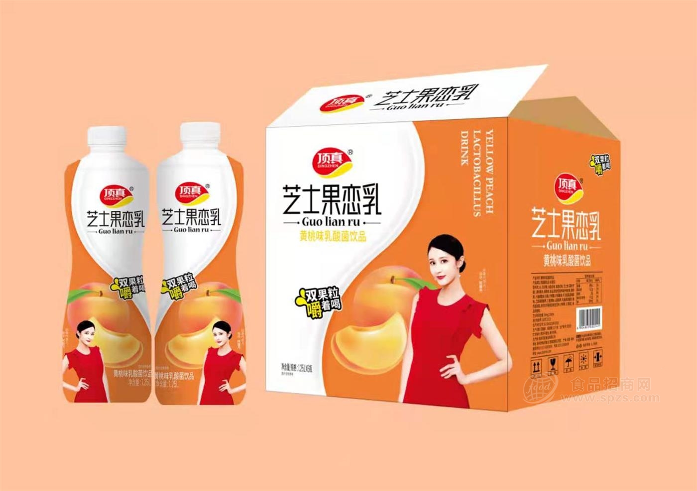 顶真芝士乳酸菌饮品在包装设计上符合宴席场景市场的高颜值审美观点,流线型的瓶身设计,简约而不失厚重,终端吸足消费者眼球!现推出芒果味、黄桃味、燕麦味三种不同口味,并拥有380ml和1.25L两种规格,分别聚焦即饮和宴饮市场,给消费者提供更加多样化的选择,迎合消费者心理需求,完胜终端市场!