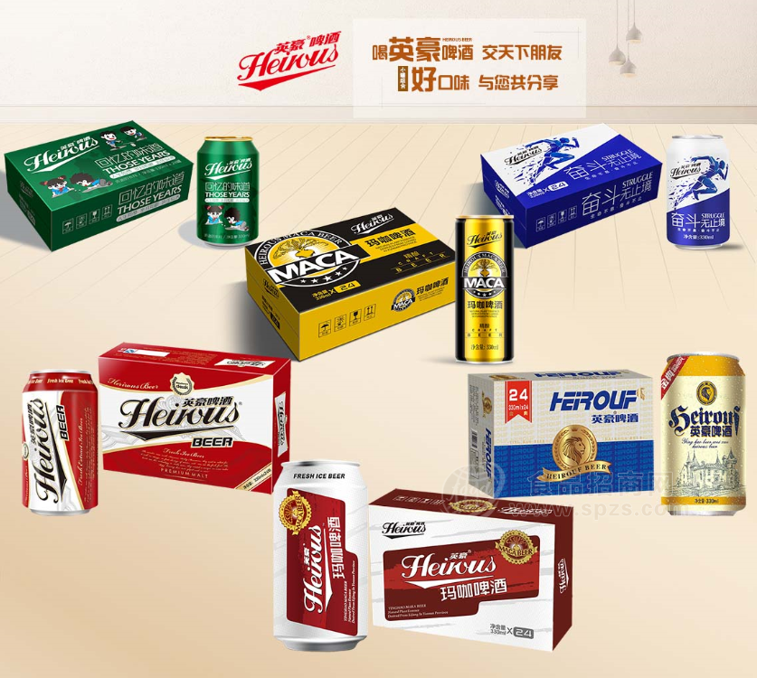 英豪啤酒旗下330毫升易拉罐装啤酒有普通易拉罐装啤酒及纤体罐装啤酒,英豪啤酒采用深井泉水、麦芽、大米、啤酒花等为原料,一如继往的传承传统啤酒工艺,生产过程全程无菌生产无菌灌装,技术人员分批次检验,使产品酒色清透,泡沫洁白细腻,持久挂杯,口味纯正,爽口,酒体协和,有明显的麦芽香和啤酒花香气,饮后使人回味无穷。英豪啤酒作为啤酒界冉冉升起的新星,青春、活力、进取,在酒质上追求细腻、清爽的口感,外包装上更加追求时尚、新颖。