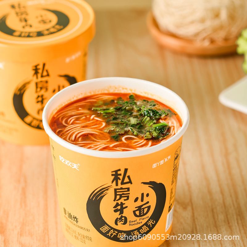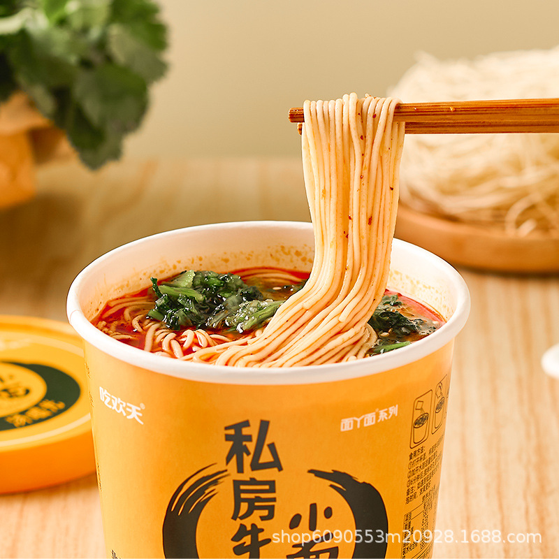 吃欢天面丫面私房牛肉小面桶装整箱冲泡速食方便面重庆小面加工