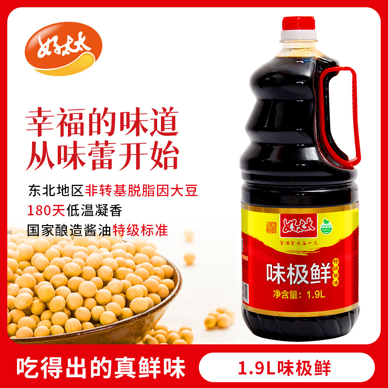 好太太味极鲜1.9L/瓶 家用装炒菜点蘸凉拌火锅调料酿造酱油生抽