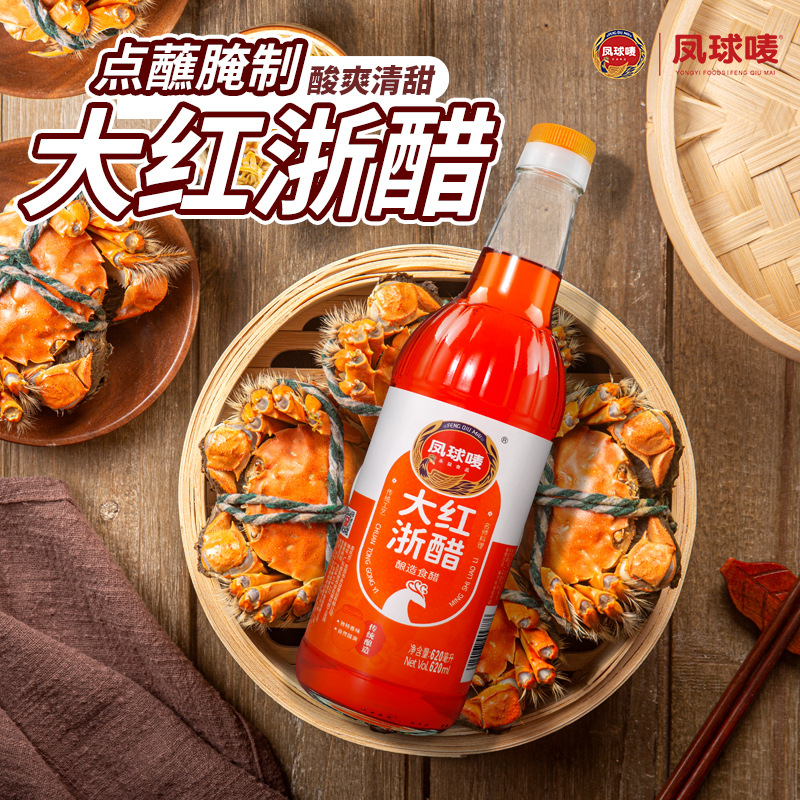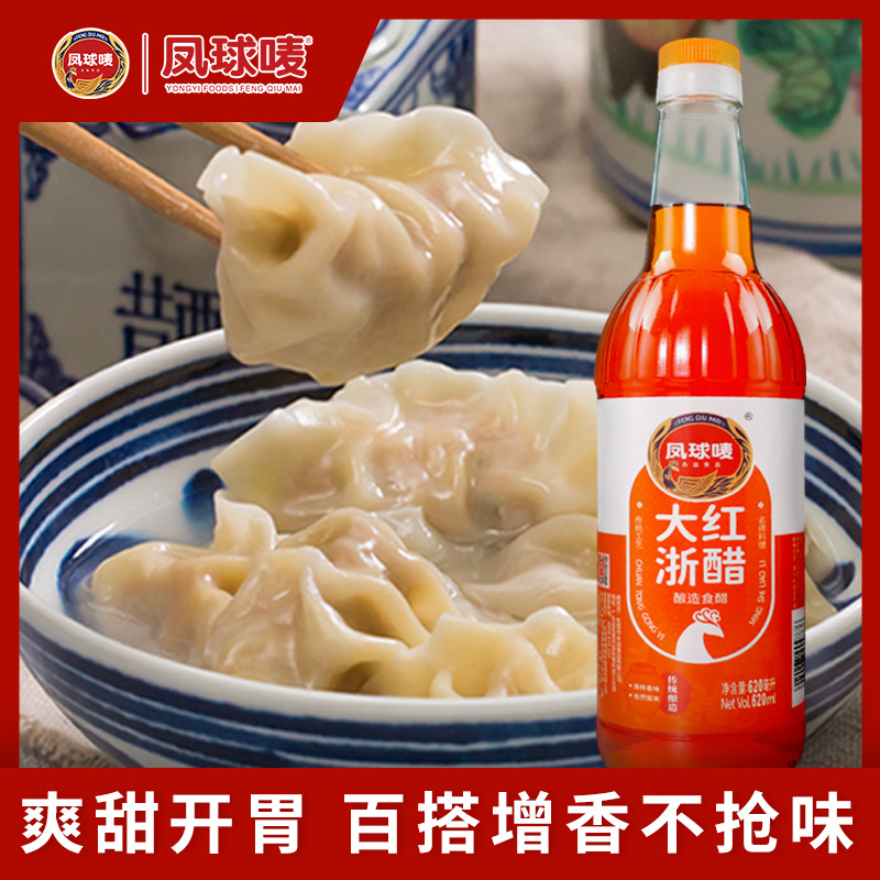 凤球唛批发定制大红浙醋620ml瓶装 红醋泡萝卜蘸水饺泡菜大浙红醋