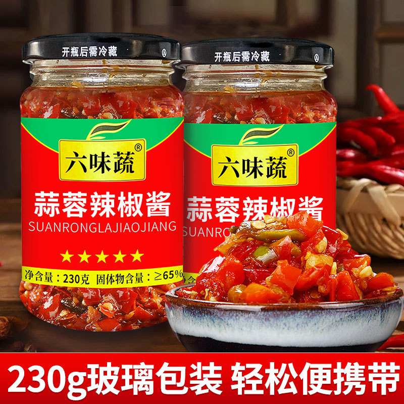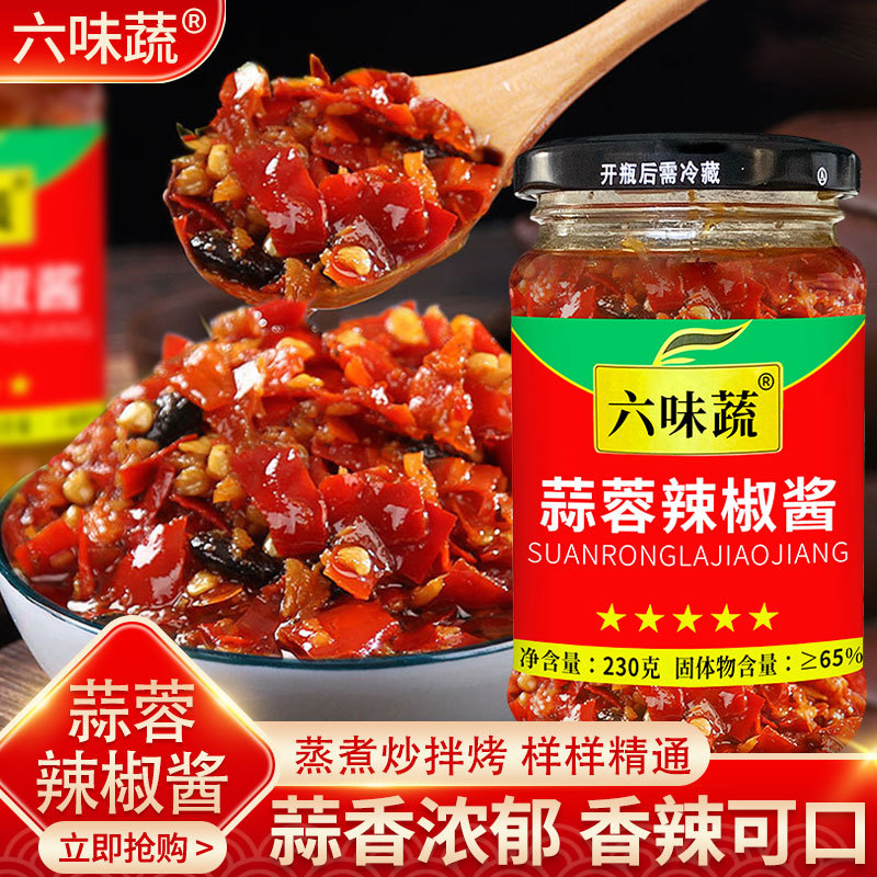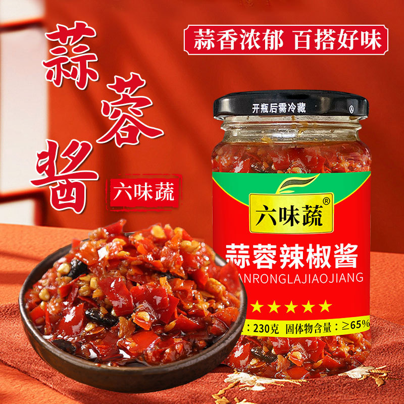 定制六味蔬蒜蓉剁辣椒农家自制特辣下饭菜辣椒酱拌饭酱香辣蒜蓉酱