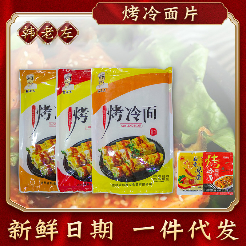 工厂货源东北小吃速食烤冷面面皮家庭装赠酱料烤冷面片500g