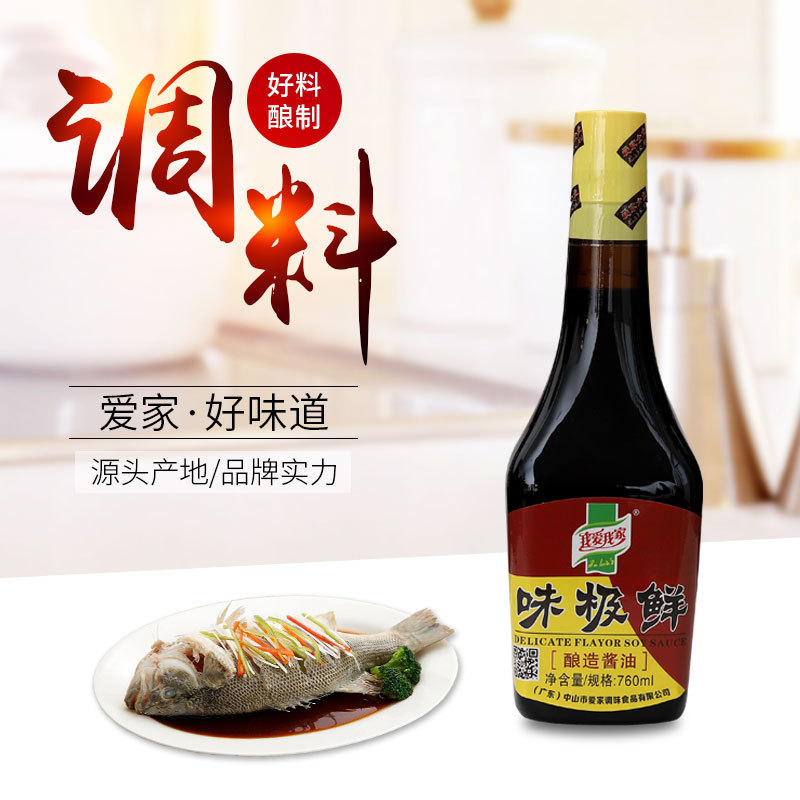 爱家调味品760ml味极鲜酱油 酱香浓郁色泽红亮 现货批发 品质保障