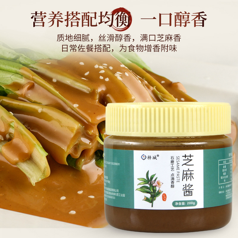 纯芝麻酱石磨研磨芝麻酱瓶装200g芝麻酱家用商用火锅凉皮米线蘸料