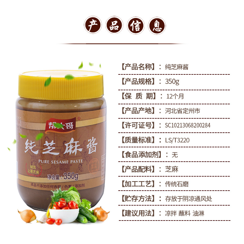 工厂定制生产瓶装纯芝麻酱多规格大玻璃瓶装做贴牌原味芝麻酱加工
