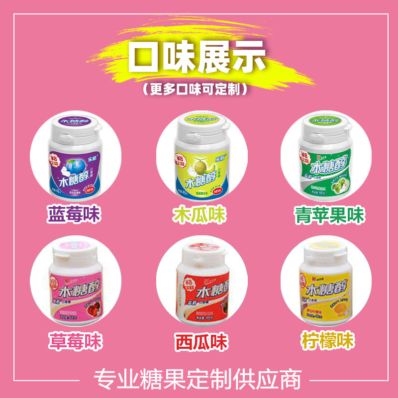 源头厂家木糖醇口香糖小包装罐装多种水果口味可代加工定制薄荷糖