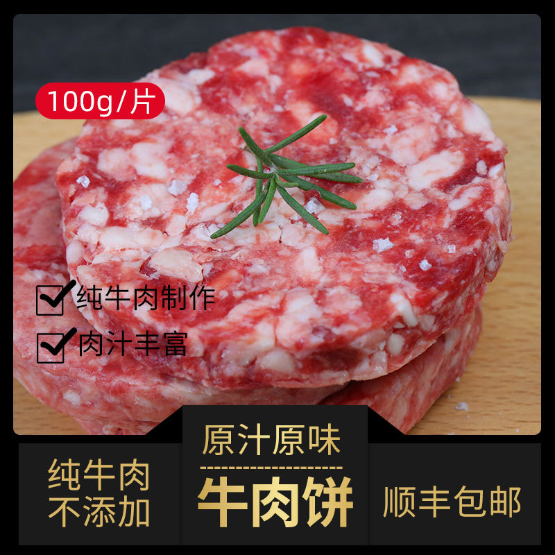 原切牛肉饼100克/片不腌制无添加单独装5片/袋早餐汉堡手抓饼食材