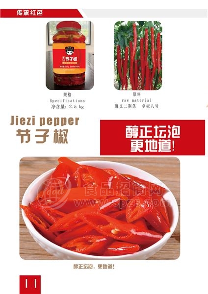 泡节子椒2.5kg是由贵州卓豪食品有限公司生产,是酱腌菜知名品牌,贵州卓豪食品有限公司生产销售的酱腌菜,品质优良,营养丰富;泡节子椒2.5kg能补充人体所需要的微量元素,增强机体免疫力,现面向全国诚招代理商。