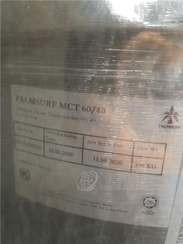 详细说明:中链甘油三酸酯是从椰子油中或者从棕榈油中提取出来的。它们是饱和甘油三酸酯的混合物,主要的是辛酸(C8H16O2)和葵酸(C10H20O2). 含量不低于95%,在香精、糖果、油脂、保健品等食品中有广泛的应用。