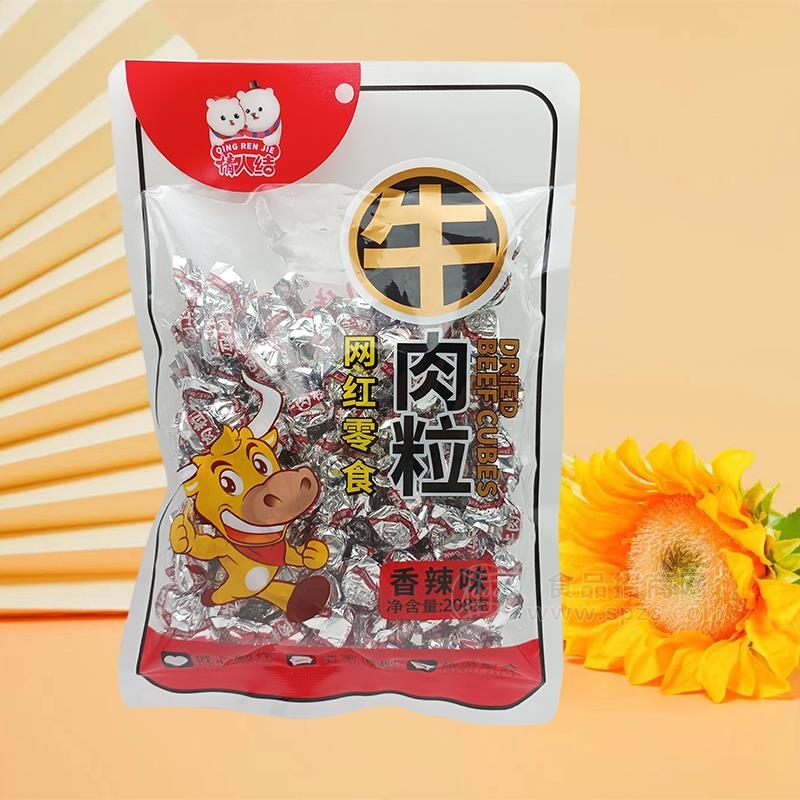 1、情人结香辣味网红牛肉粒休闲零食袋装招商208g经销商必须有经营销售能力。