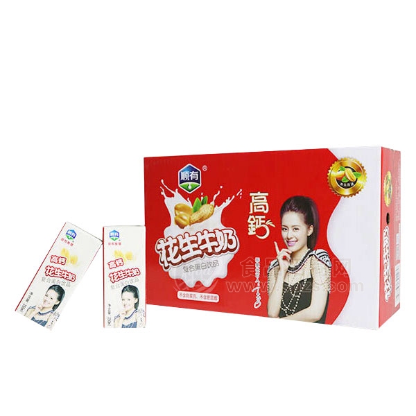 顺有高钙 花生牛奶 复合蛋白饮品是由上海顺有生物科技有限公司生产,是牛奶知名品牌,上海顺有生物科技有限公司采用国内外先进的工艺加工技术,并经专家精心调制生产;顺有高钙 花生牛奶 复合蛋白饮品营养丰富适合中国人体质和饮食习惯,现面向全国各地诚招代理商。
