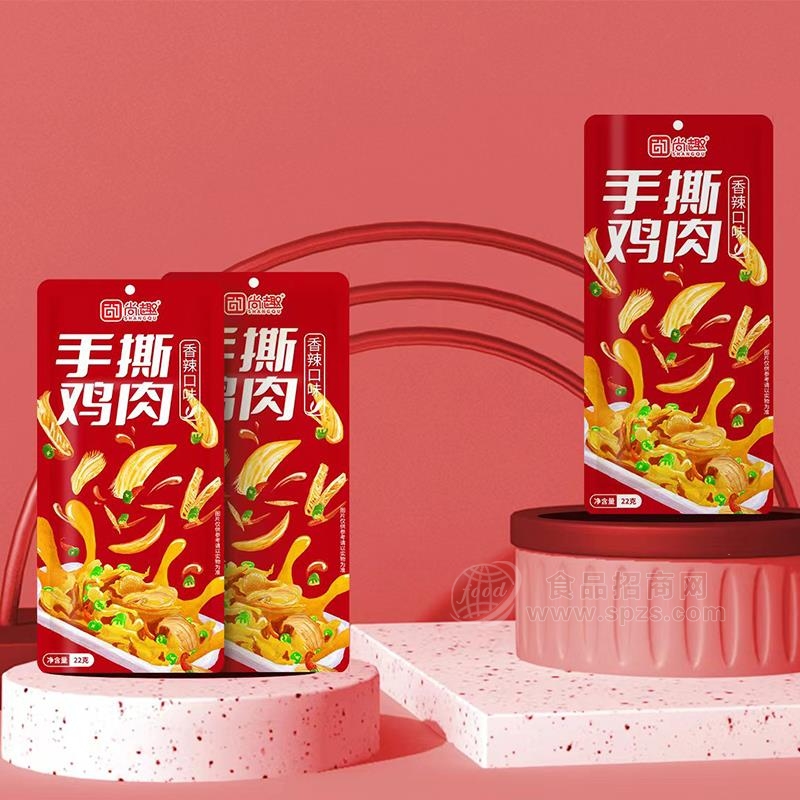 1、尚趣手撕鸡肉香辣味休闲零食零售2元22克经销商必须有经营销售能力。