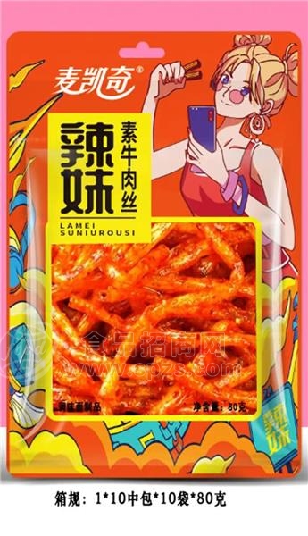 1、麦凯奇辣妹素牛肉丝调味面制品 辣条休闲食品经销商必须有经营销售能力。