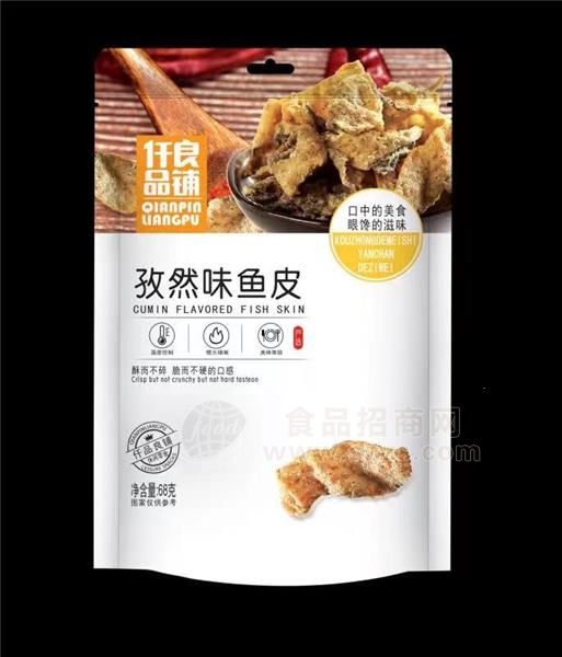1、仟品良铺孜然味鱼皮68g休闲零食经销商必须有经营销售能力。