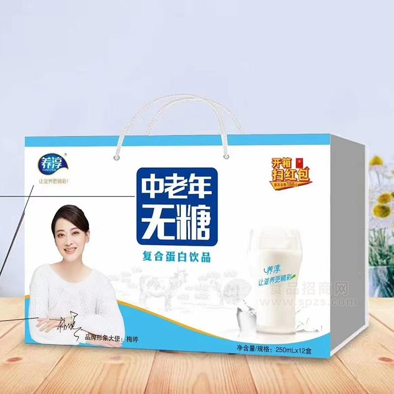 养淳中老年无糖复合蛋白饮品250mlx12盒是由衡水明远食品生物科技有限公司经营的复合蛋白饮料系列产品,养淳中老年无糖复合蛋白饮品250mlx12盒契合广大消费者需求,口味纯正,赋予您丰富的营养和口感。公司始终坚持以健康的产品,过硬的质量,贴心的服务,合理的价格和秉承双赢的经营理念,现面向全国诚招代理商,欢迎来电咨询!