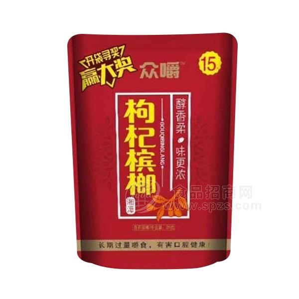 1、众嚼 湘潭枸杞槟榔 休闲食品休闲零食招商经销商必须有经营销售能力。