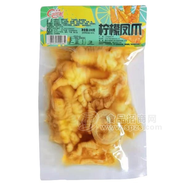 1、彩腾柠檬凤爪招商柠檬味无骨鸡爪代理休闲卤味肉制品新品上市200g经销商必须有经营销售能力。
