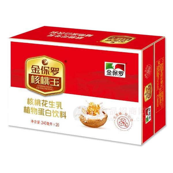 山东金保罗生物科技有限公司是国内专业的植物蛋白饮料招商代理平台,金保罗 核桃花生乳 植物蛋白饮品 核桃王植物饮料 新品招商240mlx20罐由山东金保罗生物科技有限公司荣誉出品,我们秉承“一切为了市场,一切为了顾客,敢为人先,追求卓越,把困难留给自己,把方便让给别人”的经营理念,为经销商朋友提供满意的产品。