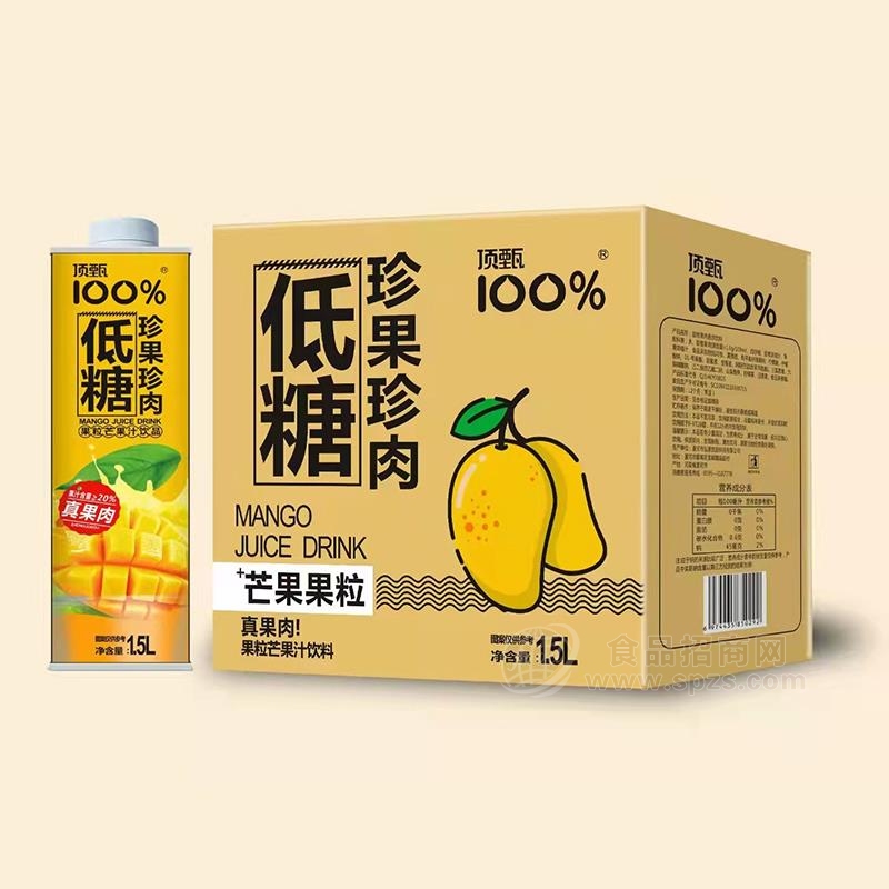 顶甄100%低糖珍果珍肉芒果果粒饮料招商果汁饮料1.5L是由漯河市弘源饮品科技有限公司经营的果汁饮料系列产品,顶甄100%低糖珍果珍肉芒果果粒饮料招商果汁饮料1.5L契合广大消费者需求,口味纯正,赋予您丰富的营养和口感。公司始终坚持以健康的产品,过硬的质量,贴心的服务,合理的价格和秉承双赢的经营理念,现面向全国诚招代理商,欢迎来电咨询!
