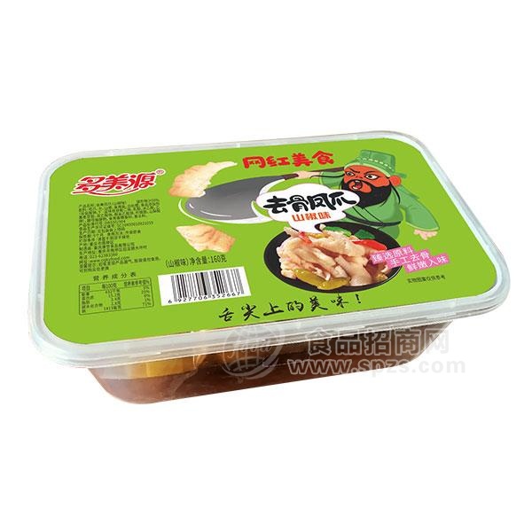 1、多美源山椒味去骨凤爪 脱骨鸡爪 无骨鸡爪泡椒凤爪160g重庆风味 盒装鸡爪 盒装凤爪经销商必须有经营销售能力。
