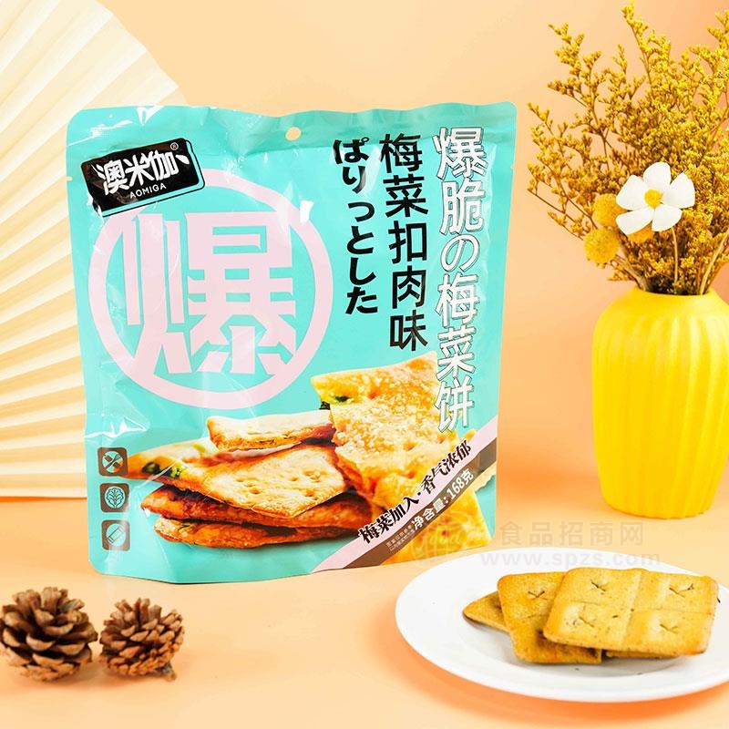 澳米伽爆脆梅菜饼梅菜扣肉味饼干休闲食品168g是由普宁市澳米伽食品有限公司生产,是饼干知名品牌,普宁市澳米伽食品有限公司采用国内外先进的工艺加工技术,并经专家精心调制生产;澳米伽爆脆梅菜饼梅菜扣肉味饼干休闲食品168g营养丰富适合中国人体质和饮食习惯,现面向全国各地诚招代理商。