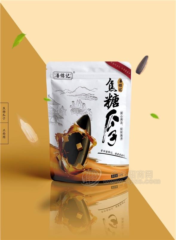 潘锦记焦糖瓜子是云南潘锦记贸易有限公司旗下的其中一份产品,产品特点:1,精选上等优质原材料经过多种配料加工而成。2.三合一镀铝膜加厚材料制袋密封而,保值保鲜更长久,3.结合中央电视台展播推广,让产品更有影响力,4,宽大的内袋尺寸融入精选上等的大颗粒材料形成一袋优质的产品,让市场更有买点,更消费潜在力量,营养丰富适合中国人体质和饮食习惯,现面向全国各地诚招代理商。