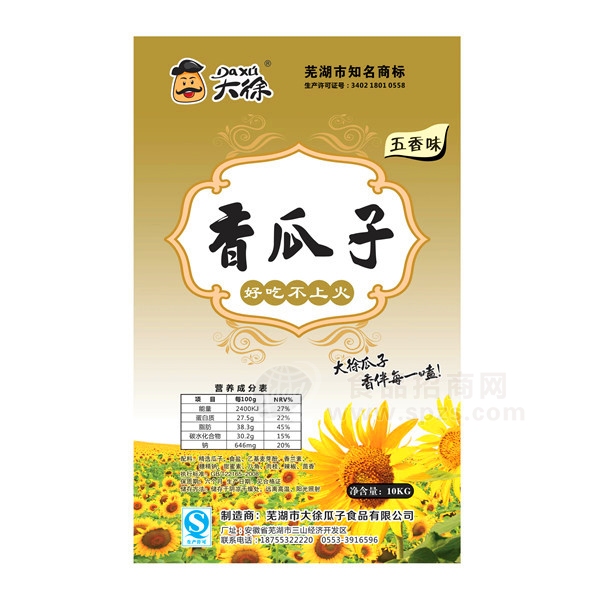 1、大徐 香瓜子五香味10kg 休闲食品经销商必须有经营销售能力。