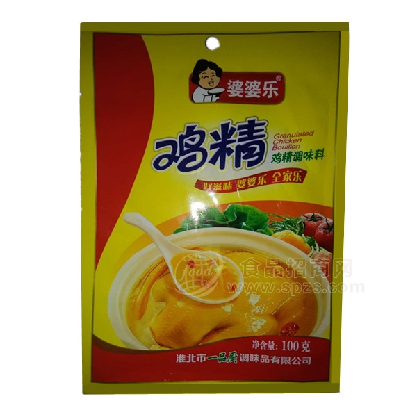 婆婆乐鸡精调味料100g招商是由淮北市一品厨调味品有限公司生产的,是鸡精知名品牌,淮北市一品厨调味品有限公司采用国内外先进的工艺加工技术,并经专家精心调制生产;婆婆乐鸡精调味料100g招商营养丰富,并能增加菜肴色泽及香味,风味口感更佳。现面向全国各地诚招代理商。