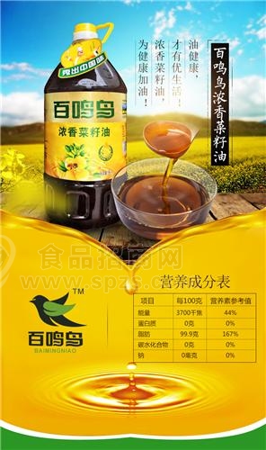 浓香菜籽油:是由湖北万美生物科技有限公司生产,是菜籽油知名品牌,采用国内外先进的工艺加工技术精心生产;