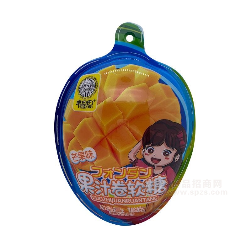 1、韦思思芒果味果汁卷软糖糖果招商118g经销商必须有经营销售能力。