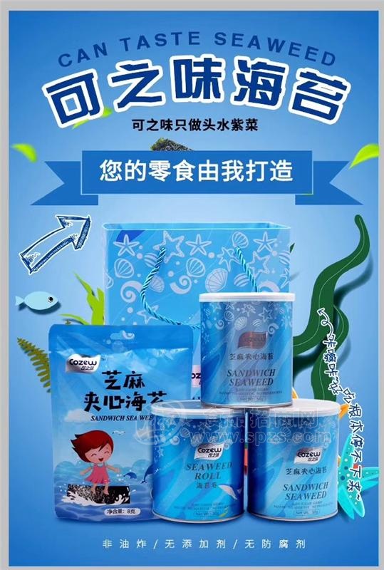 可之味海苔产品包括芝麻夹心海苔和原味海苔卷,除具有海苔所特有的营养和美味外,还拥有独特的特点: