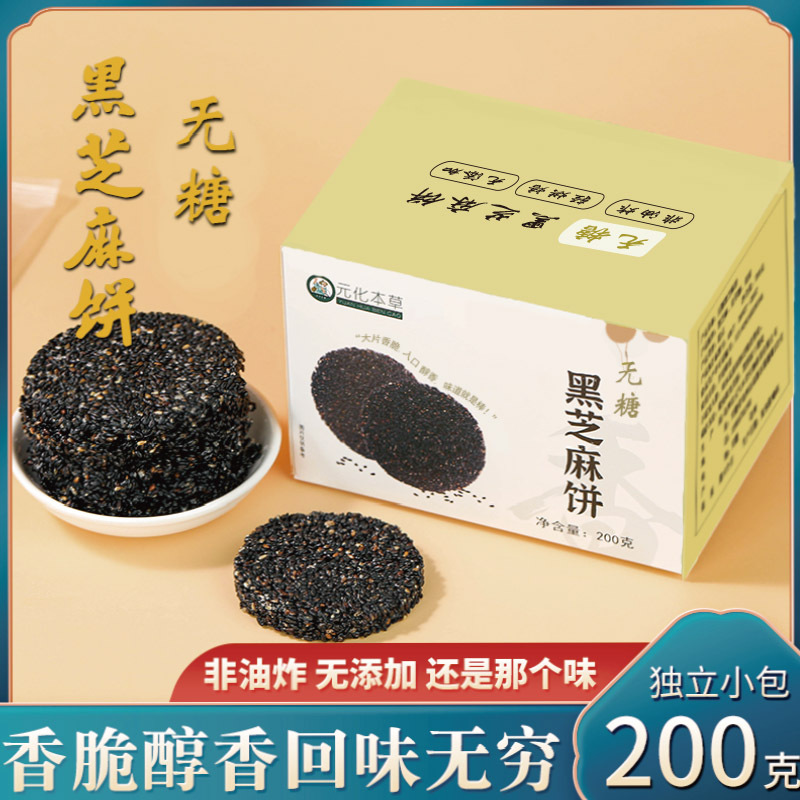 元化本草休闲零食0蔗糖高钙手工黑芝麻饼香脆酥孕味糕点