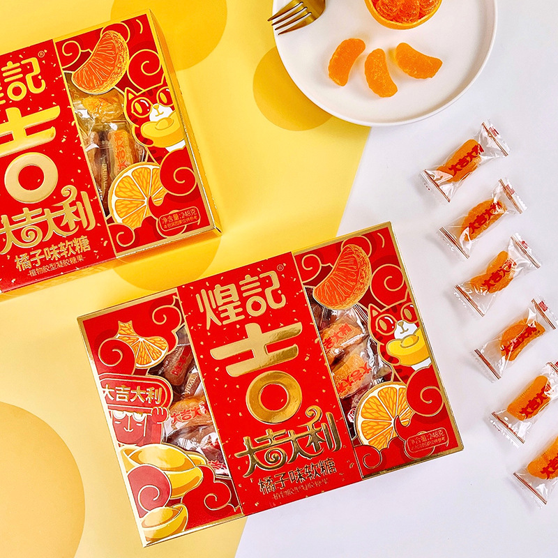 煌记新品大吉大利橘子软糖248g盒装兔年年货合家欢乐客厅休闲零食
