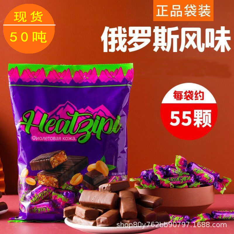 紫皮糖 俄罗斯风味巧克力夹心糖 网红休闲零食糖果 花生酥糖 批发