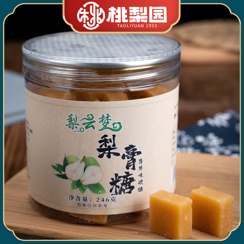 【源头工厂】梨膏糖246g克迎宾展会百草罐装砂板糖零食薄荷味