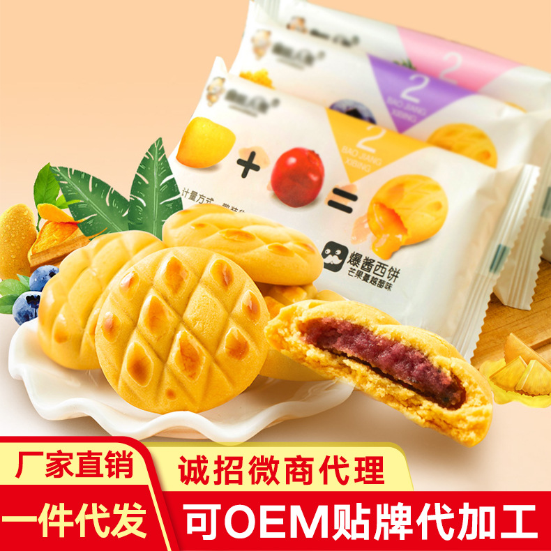 爆浆曲奇软心西饼网红芒果蔓越莓夹心饼干儿童零食批发500g