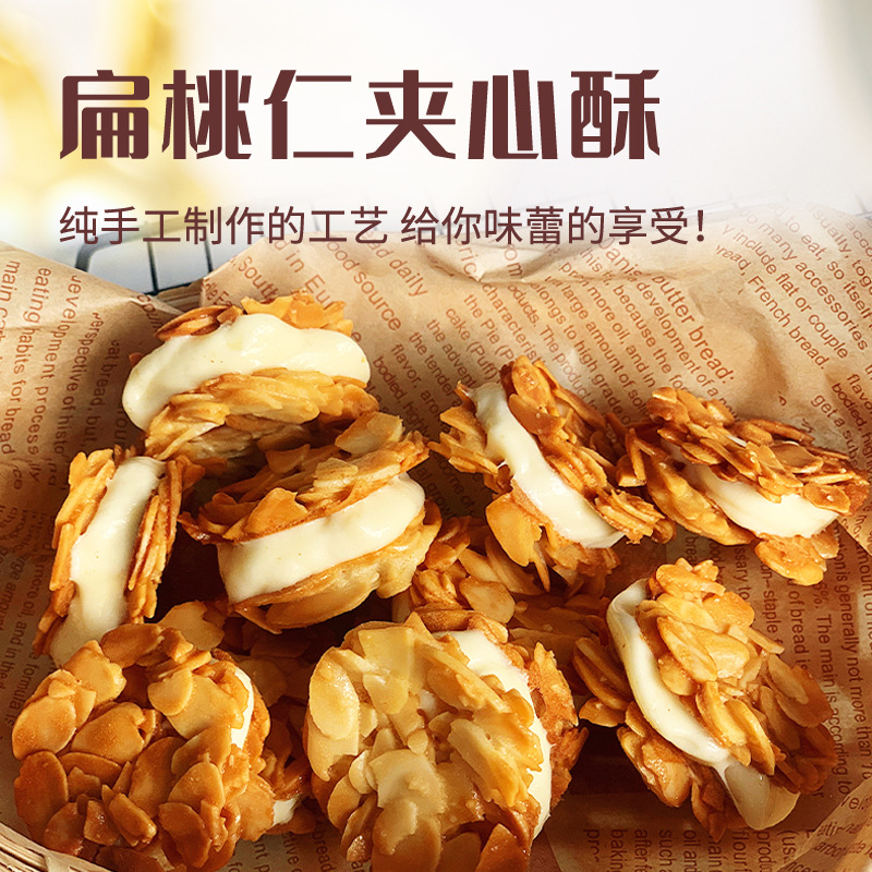 关键词:【一件代发】扁桃仁牛轧酥杏仁夹心酥坚果拉丝饼干下午茶办公零食,供应,烘焙|膨化|糖,烘焙食品,糕点