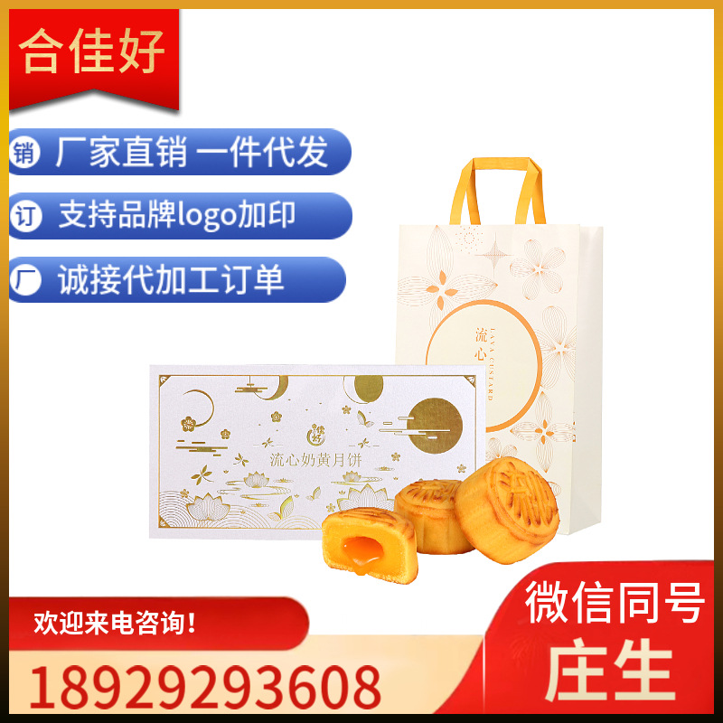 当前位置:首页>>供应>>烘焙|膨化|糖>>烘焙食品>>月饼>>2022中秋新款合佳好流心奶黄月饼珠白高档礼盒装+礼袋+logo加印