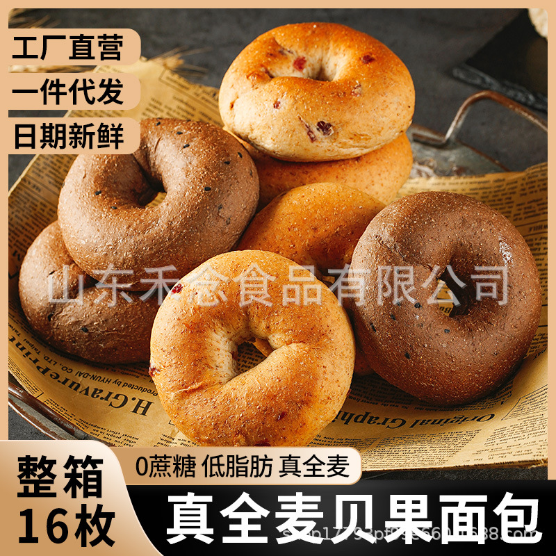 康泉无加蔗糖藜麦蔓越莓杂粮黑芝麻贝果粗粮代餐一件代发50g/枚