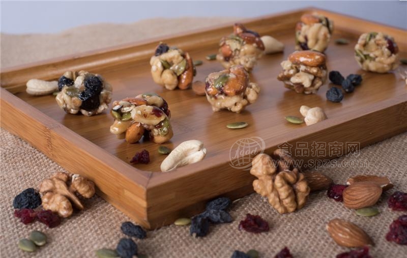 1、产品原材料:核桃仁、蔓越莓、巴旦木、腰果、南瓜子仁、黑加仑、我们每一个原材料都取*好的特级种子作为原料